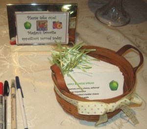 As favors, we gave each guest a copy of three of Megan’s favorite dip/spread recipes which we also served at her shower.