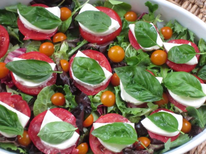 - Drizzle with olive oil and balsamic vinegar; salt and pepper to taste.