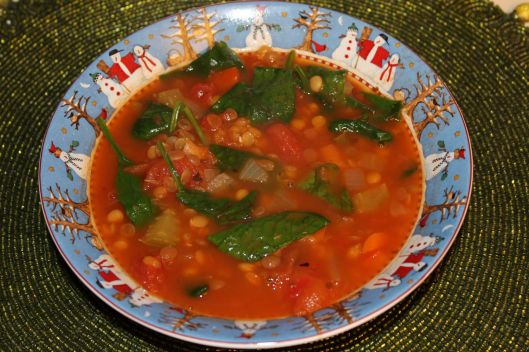 In the New Year, many of us have vowed to lost weight (5% for me) and eat healthier. This recipe from Aggie’s Kitchen grabbed my attention with the healthy vegetables and protein of the lentils. It’s an easy soup to make and full of nutrients. It makes a large batch and I found I added more and more water since the soup gets quite thick. I’ve shared some with a vegan friend and frozen some for a later treat.