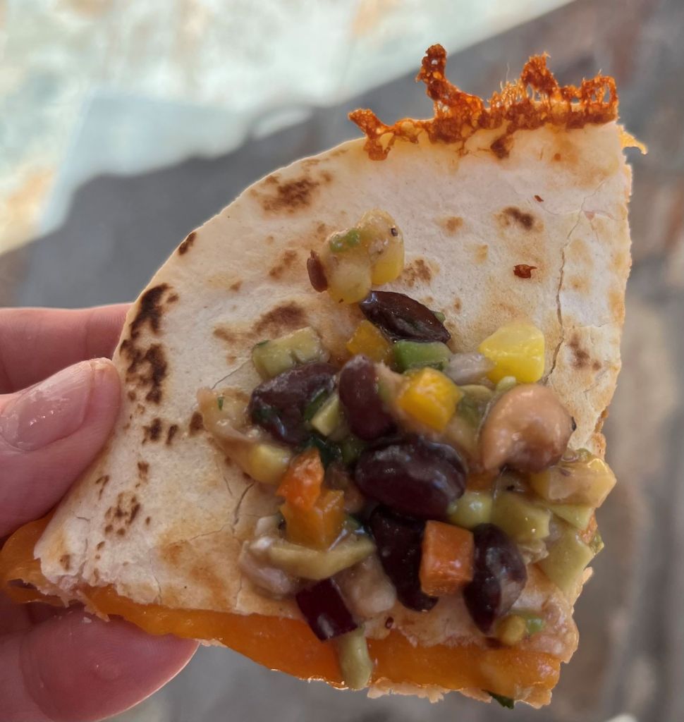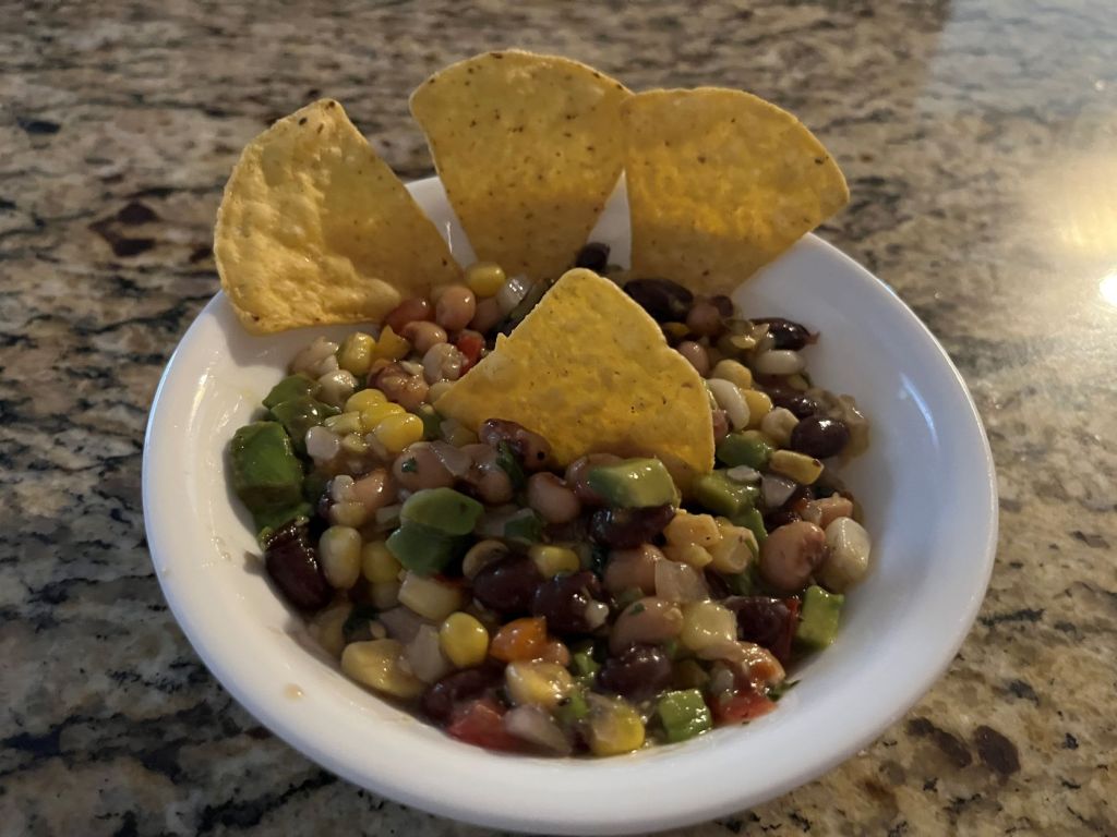 Cowboy Caviar is an old recipe that was created by Helen Corbitt, famed 1950s Neiman Marcus food director, it was first served as “pickled black-eyed peas” on New Year’s Eve at the Houston Country Club. Soon after, it was dubbed “Texas caviar.” I found this tidbit of history interesting. Cowboy Caviar is great served as an appetizer with tortilla chips. My favorite is to serve it with a cheese, or chicken and cheese, quesadilla. It is also a great topper for any green salad. The recipe made quite a bit and I wondered how I would get through it…never fear…I shared it at a party and leftovers with my daughter, who is now a big fan!