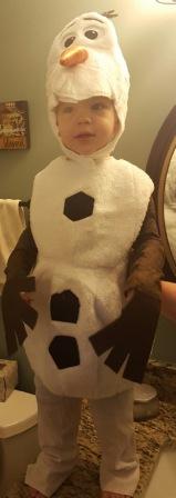Fast forward to 2015 and grandson, Evan’s, Halloween experience.  His favorite character today is from the movie FROZEN and we were fortunate enough to find the darling OLAF costume on Amazon.com.