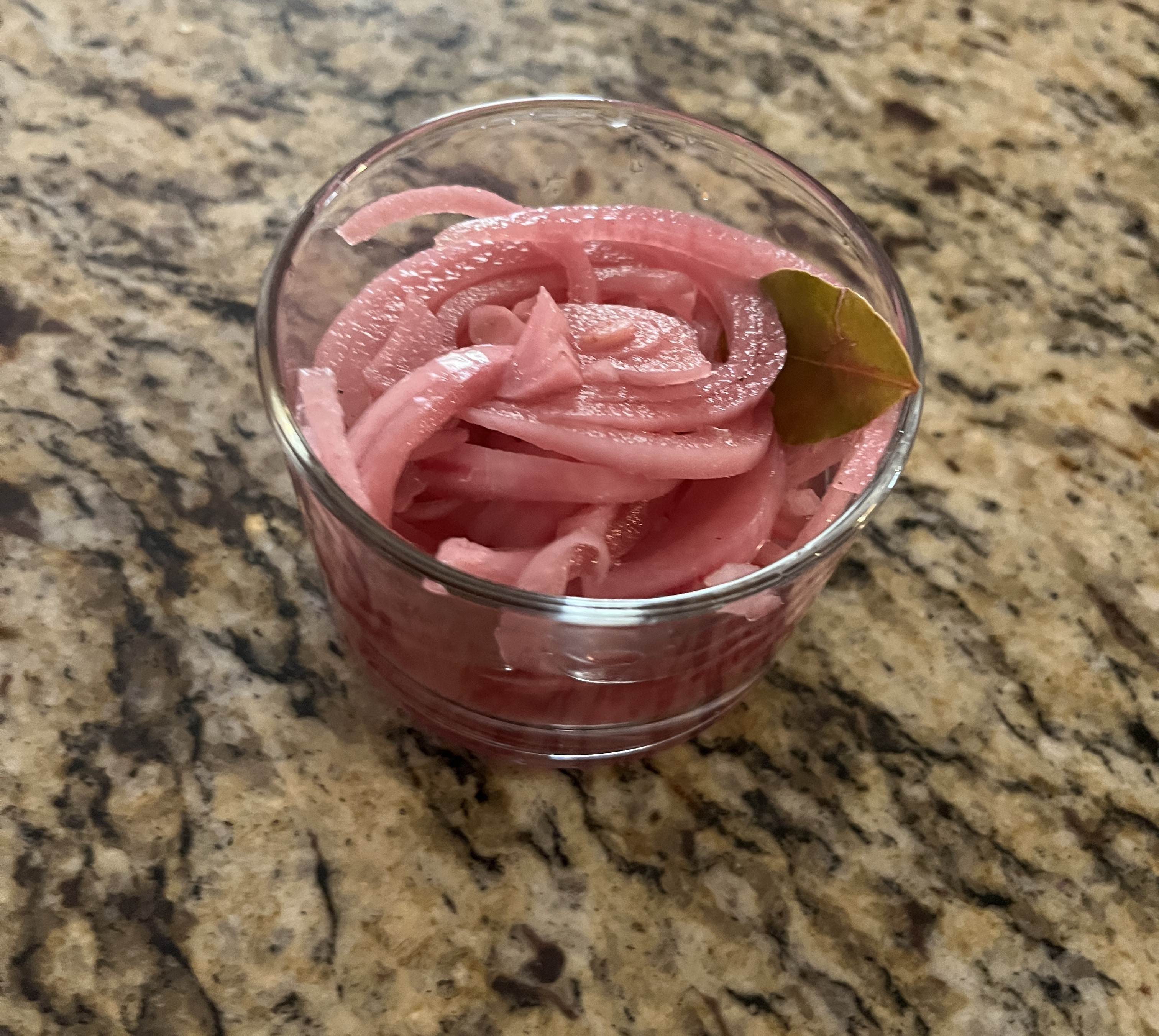 Pickled red onions are delicious by themselves or try them on salads, tacos, potato salad, egg salad, fish and chips, a sandwich and more. This is such an easy recipe and does not use refined sugar.
