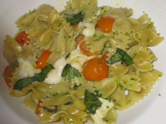 Caprese Pasta? With smoked mozzarella? OMG…I had to try this recipe found on Iowa Girl Eats. I rarely eat wheat pasta but this was worth the splurge!